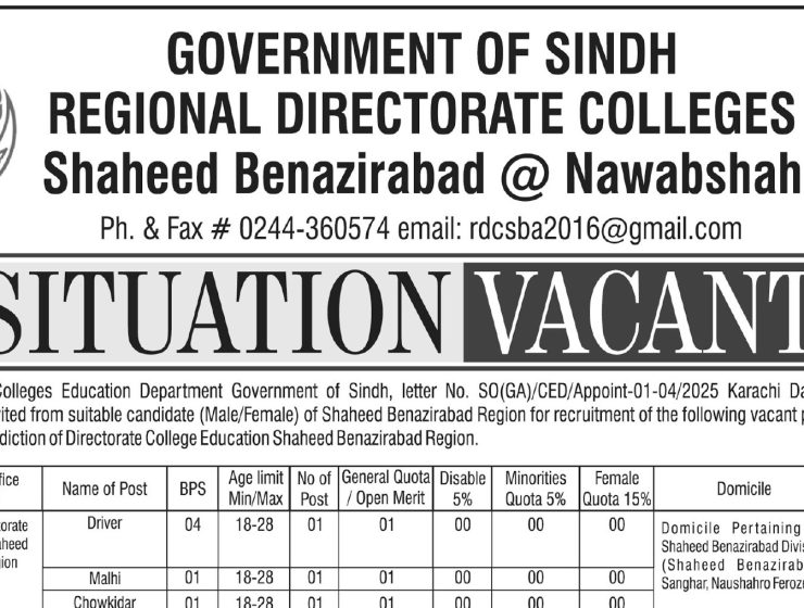 Regional Directorate of Colleges Jobs 2026 – Multiple Vacancies in Nawabshah, Sindh